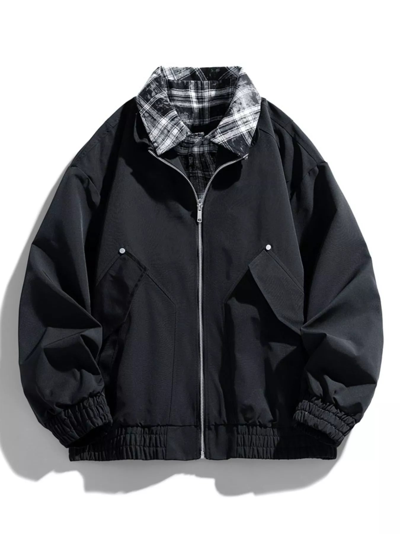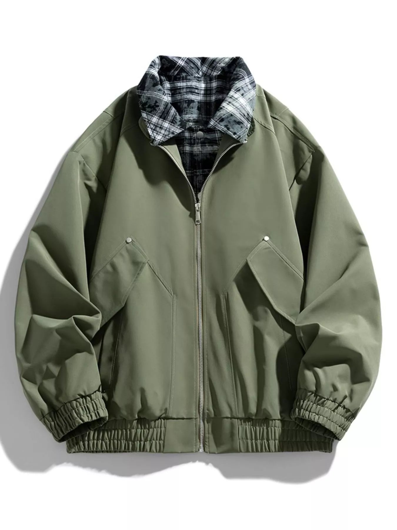 Men's Plus Size Plaid Collar Zip-Up Bomber Jacket