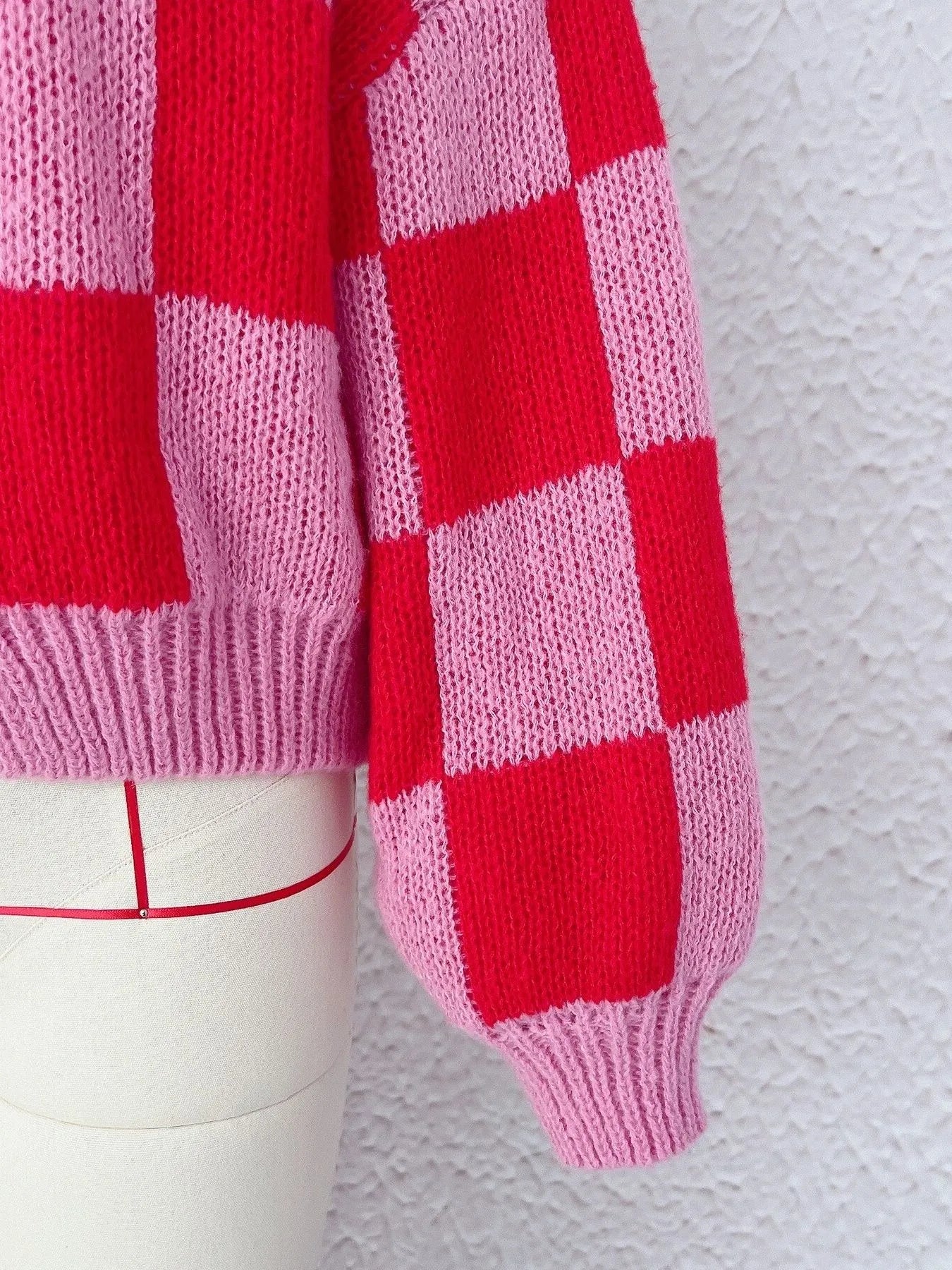 Checkered Open Front Long Sleeve Cardigan